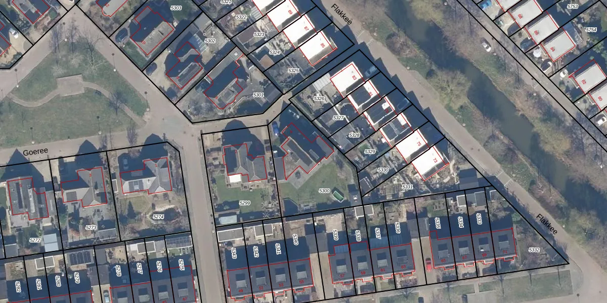 Het perceel waarop Goeree 4 staat heeft een oppervlakte van 747 m². Dit is een groot perceel. De perceeloppervlakte wordt geregistreerd door het Kadaster. Gedetailleerde informatie over de maten van dit perceel kunt u vinden in het rapport Kadastrale kaart met maatvoering van Goeree 4.