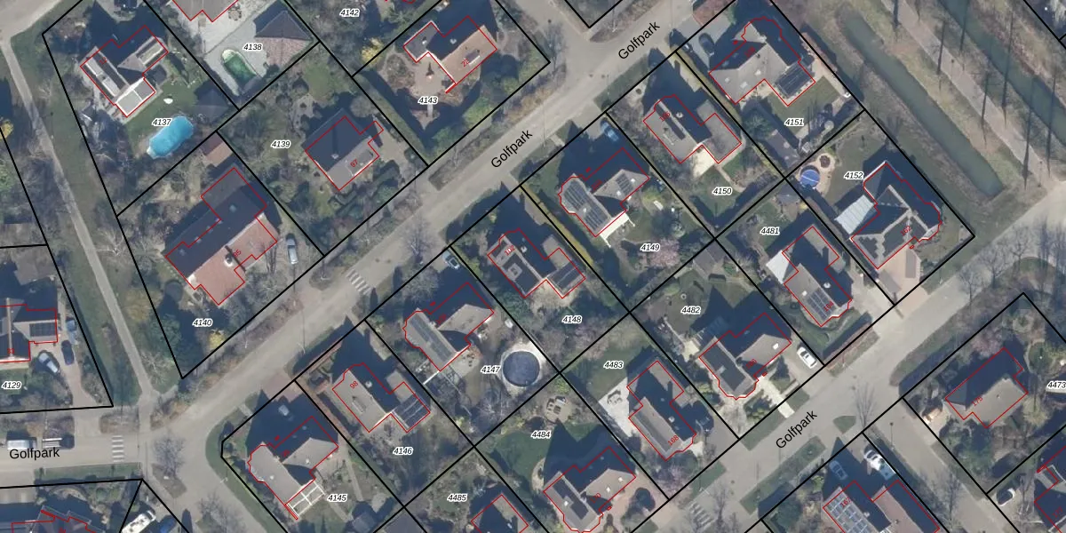 Gebruik de zoekbalk of klik op een perceel voor informatie over de adressen binnen dit perceel.