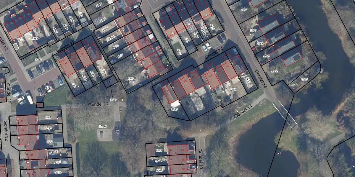 Het perceel waarop Gondel 14 53 staat heeft een oppervlakte van 969 m². Dit is een groot perceel. De perceeloppervlakte wordt geregistreerd door het Kadaster. Gedetailleerde informatie over de maten van dit perceel kunt u vinden in het rapport Kadastrale kaart met maatvoering van Gondel 14 53.