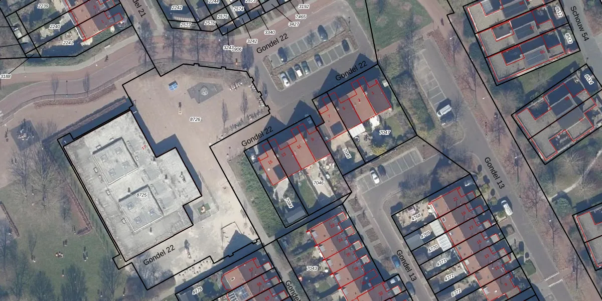 Het perceel waarop Gondel 22 11 staat heeft een oppervlakte van 473 m². Dit is een groot perceel. De perceeloppervlakte wordt geregistreerd door het Kadaster. Gedetailleerde informatie over de maten van dit perceel kunt u vinden in het rapport Kadastrale kaart met maatvoering van Gondel 22 11.
