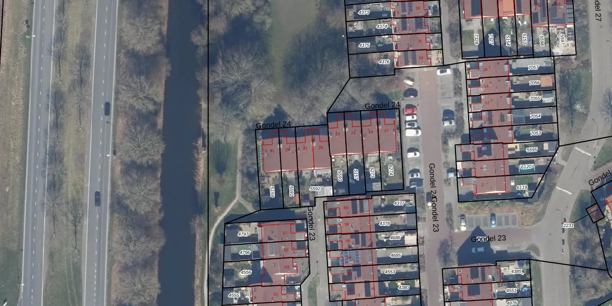 Gondel 24 27 is gelegen op kadastraal perceel LLS00M5592. Deze kadastrale aanduiding is uniek en wordt gebruikt door het Kadaster om eigendomsrechten en andere zakelijke rechten vast te leggen. Het perceel maakt onderdeel uit van de kadastrale gemeente Lelystad.