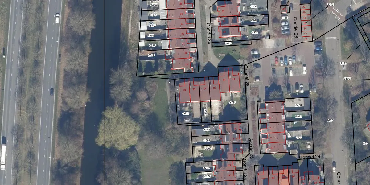 Gondel 26 21 is gelegen op kadastraal perceel LLS00M5601. Deze kadastrale aanduiding is uniek en wordt gebruikt door het Kadaster om eigendomsrechten en andere zakelijke rechten vast te leggen. Het perceel maakt onderdeel uit van de kadastrale gemeente Lelystad.