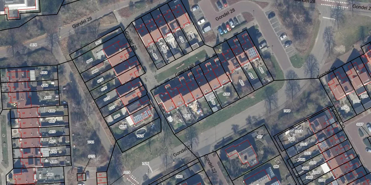Het perceel waarop Gondel 28 15 staat heeft een oppervlakte van 652 m². Dit is een groot perceel. De perceeloppervlakte wordt geregistreerd door het Kadaster. Gedetailleerde informatie over de maten van dit perceel kunt u vinden in het rapport Kadastrale kaart met maatvoering van Gondel 28 15.