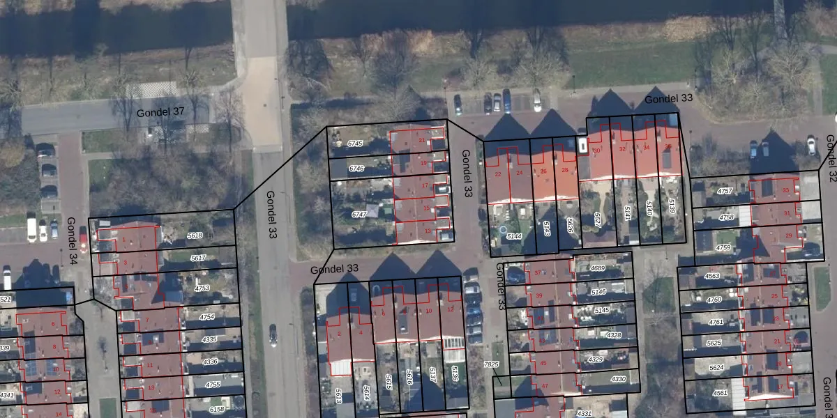 Het perceel waarop Gondel 33 15 staat heeft een oppervlakte van 474 m². Dit is een groot perceel. De perceeloppervlakte wordt geregistreerd door het Kadaster. Gedetailleerde informatie over de maten van dit perceel kunt u vinden in het rapport Kadastrale kaart met maatvoering van Gondel 33 15.