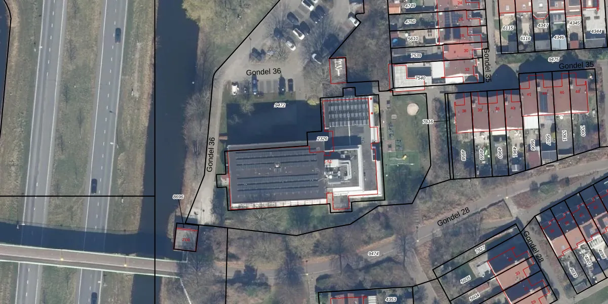 Het perceel waarop Gondel 36 28 staat heeft een oppervlakte van 1365 m². Dit is een zeer groot perceel. De perceeloppervlakte wordt geregistreerd door het Kadaster. Gedetailleerde informatie over de maten van dit perceel kunt u vinden in het rapport Kadastrale kaart met maatvoering van Gondel 36 28.