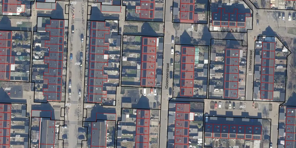 Het perceel waarop Gooimeerstraat 38 staat heeft een oppervlakte van 957 m². Dit is een groot perceel. De perceeloppervlakte wordt geregistreerd door het Kadaster. Gedetailleerde informatie over de maten van dit perceel kunt u vinden in het rapport Kadastrale kaart met maatvoering van Gooimeerstraat 38.
