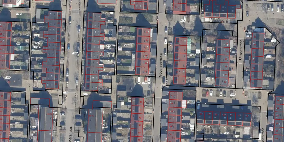 Het perceel waarop Gooimeerstraat 40 staat heeft een oppervlakte van 957 m². Dit is een groot perceel. De perceeloppervlakte wordt geregistreerd door het Kadaster. Gedetailleerde informatie over de maten van dit perceel kunt u vinden in het rapport Kadastrale kaart met maatvoering van Gooimeerstraat 40.