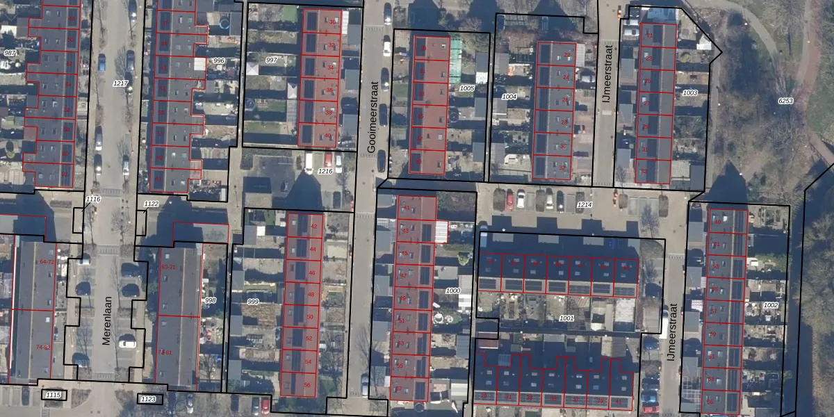Het perceel waarop Gooimeerstraat 41 staat heeft een oppervlakte van 1281 m². Dit is een zeer groot perceel. De perceeloppervlakte wordt geregistreerd door het Kadaster. Gedetailleerde informatie over de maten van dit perceel kunt u vinden in het rapport Kadastrale kaart met maatvoering van Gooimeerstraat 41.