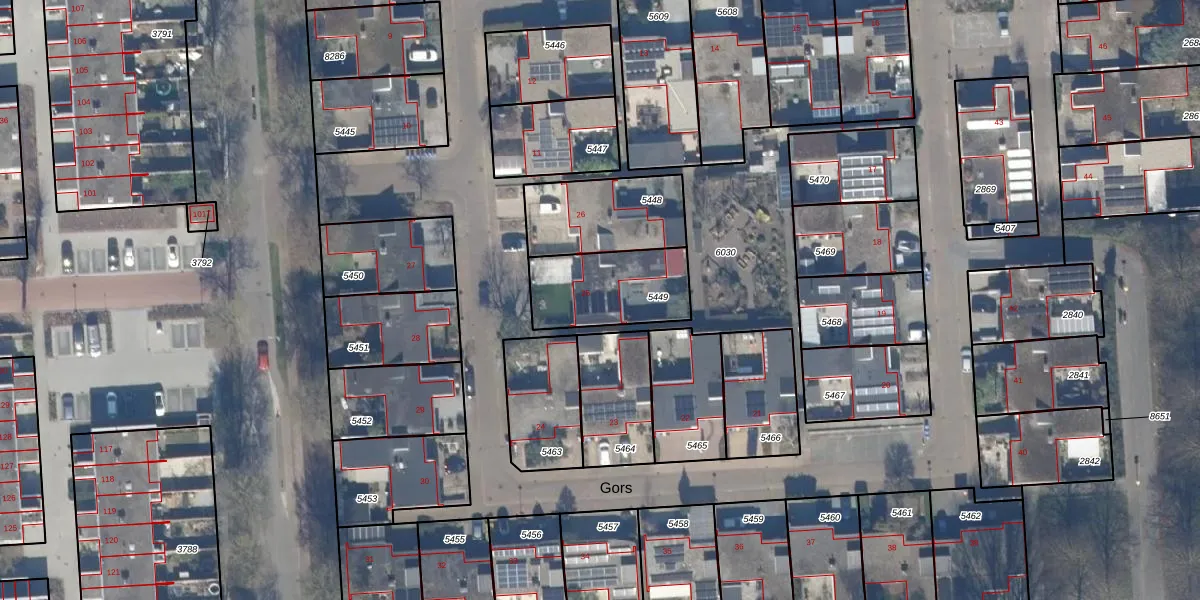 Het perceel waarop Gors 25 staat heeft een oppervlakte van 321 m². Dit is een groot perceel. De perceeloppervlakte wordt geregistreerd door het Kadaster. Gedetailleerde informatie over de maten van dit perceel kunt u vinden in het rapport Kadastrale kaart met maatvoering van Gors 25.