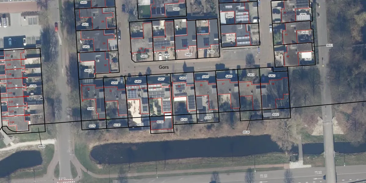 Het perceel waarop Gors 35 staat heeft een oppervlakte van 293 m². Dit is een middelgroot perceel. De perceeloppervlakte wordt geregistreerd door het Kadaster. Gedetailleerde informatie over de maten van dit perceel kunt u vinden in het rapport Kadastrale kaart met maatvoering van Gors 35.