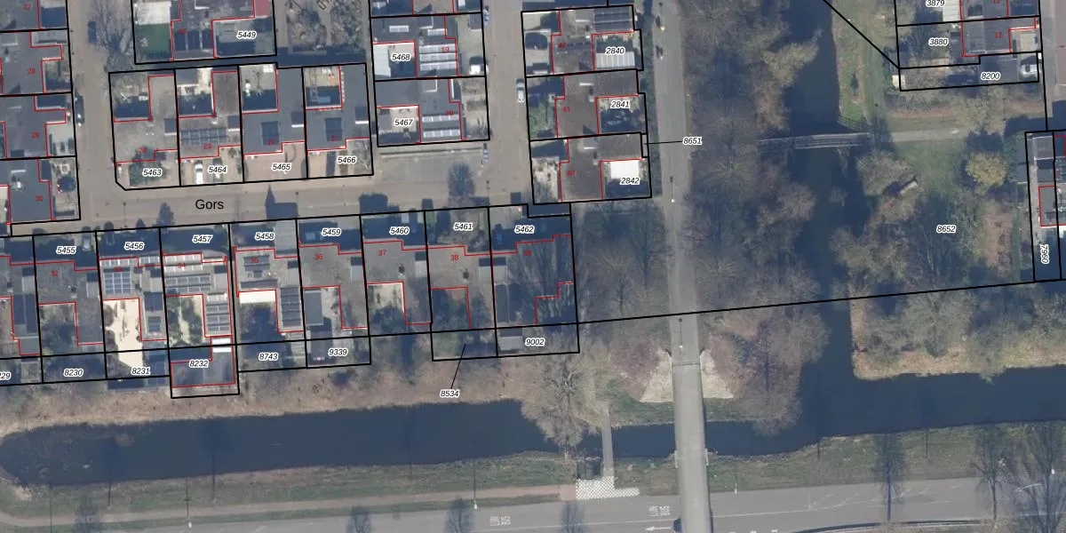 Het perceel waarop Gors 39 staat heeft een oppervlakte van 330 m². Dit is een groot perceel. De perceeloppervlakte wordt geregistreerd door het Kadaster. Gedetailleerde informatie over de maten van dit perceel kunt u vinden in het rapport Kadastrale kaart met maatvoering van Gors 39.