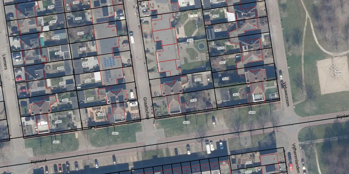 Gebruik de zoekbalk of klik op een perceel voor informatie over de adressen binnen dit perceel.