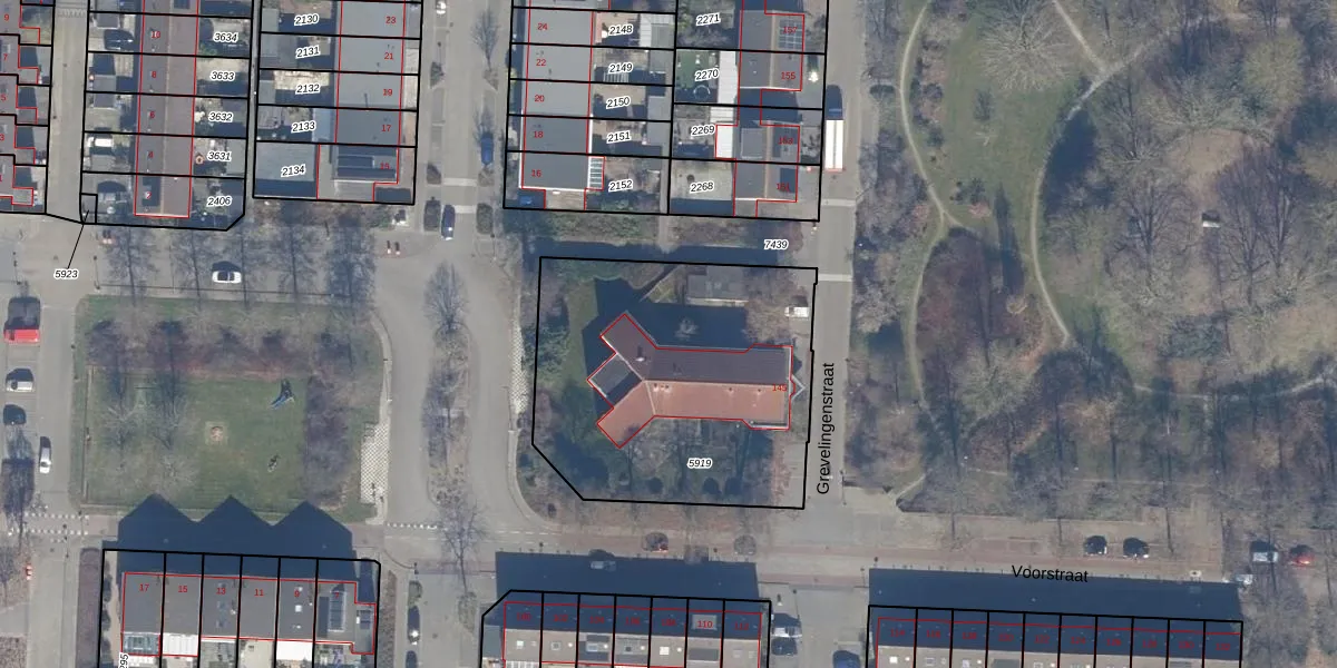 Het perceel waarop Grevelingenstraat 105 staat heeft een oppervlakte van 1449 m². Dit is een zeer groot perceel. De perceeloppervlakte wordt geregistreerd door het Kadaster. Gedetailleerde informatie over de maten van dit perceel kunt u vinden in het rapport Kadastrale kaart met maatvoering van Grevelingenstraat 105.
