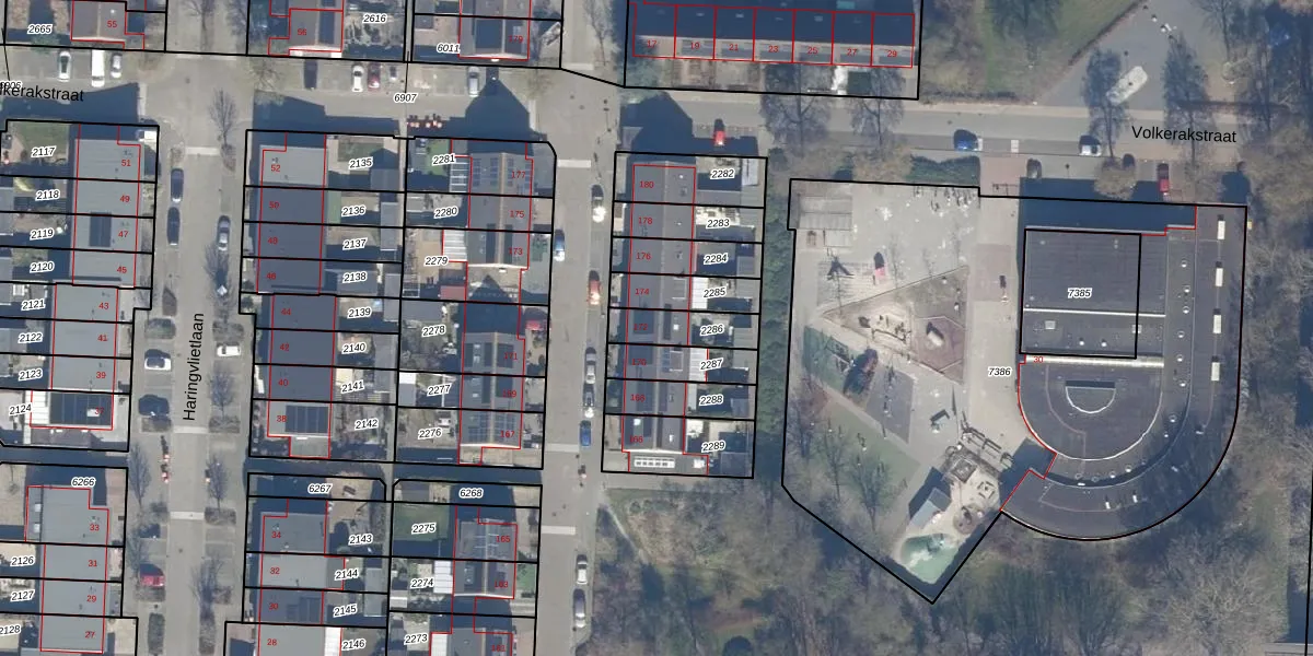 Gebruik de zoekbalk of klik op een perceel voor informatie over de adressen binnen dit perceel.
