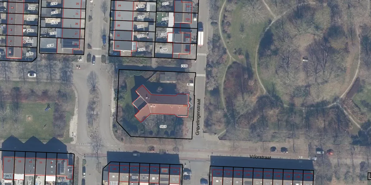Het perceel waarop Grevelingenstraat 77 staat heeft een oppervlakte van 1449 m². Dit is een zeer groot perceel. De perceeloppervlakte wordt geregistreerd door het Kadaster. Gedetailleerde informatie over de maten van dit perceel kunt u vinden in het rapport Kadastrale kaart met maatvoering van Grevelingenstraat 77.