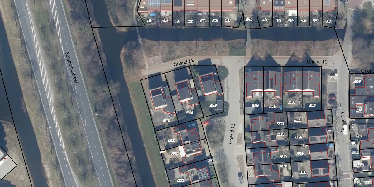 Gebruik de zoekbalk of klik op een perceel voor informatie over de adressen binnen dit perceel.