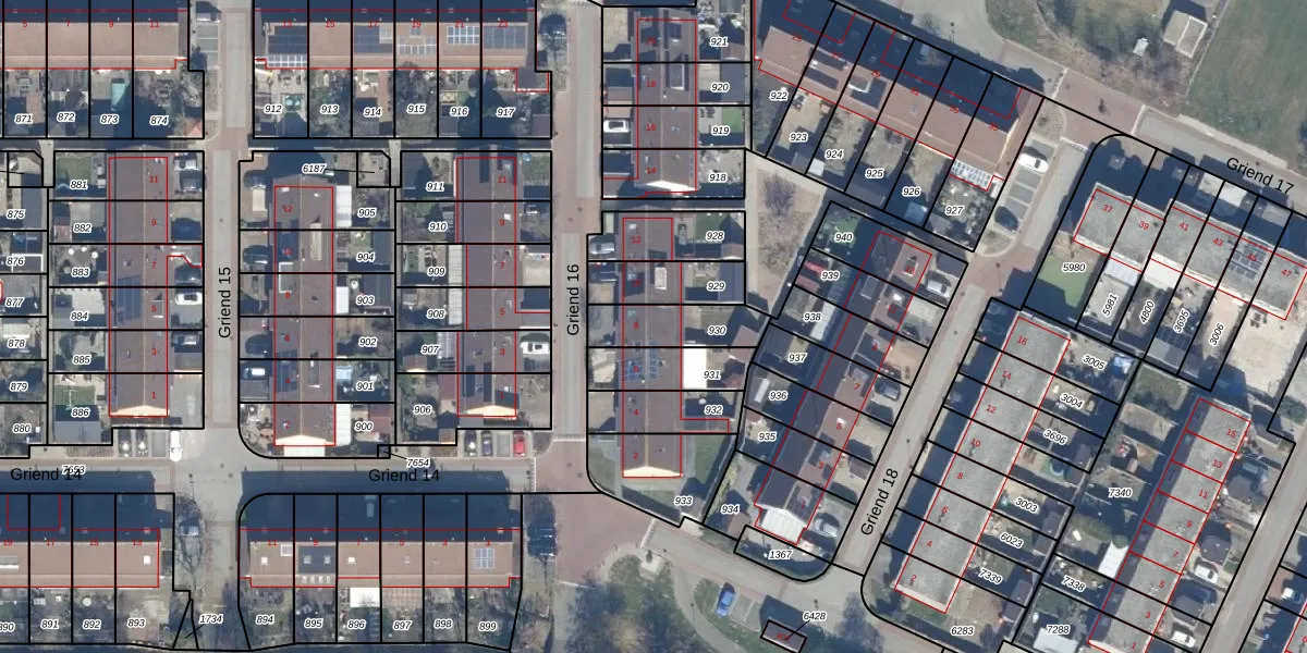 Gebruik de zoekbalk of klik op een perceel voor informatie over de adressen binnen dit perceel.