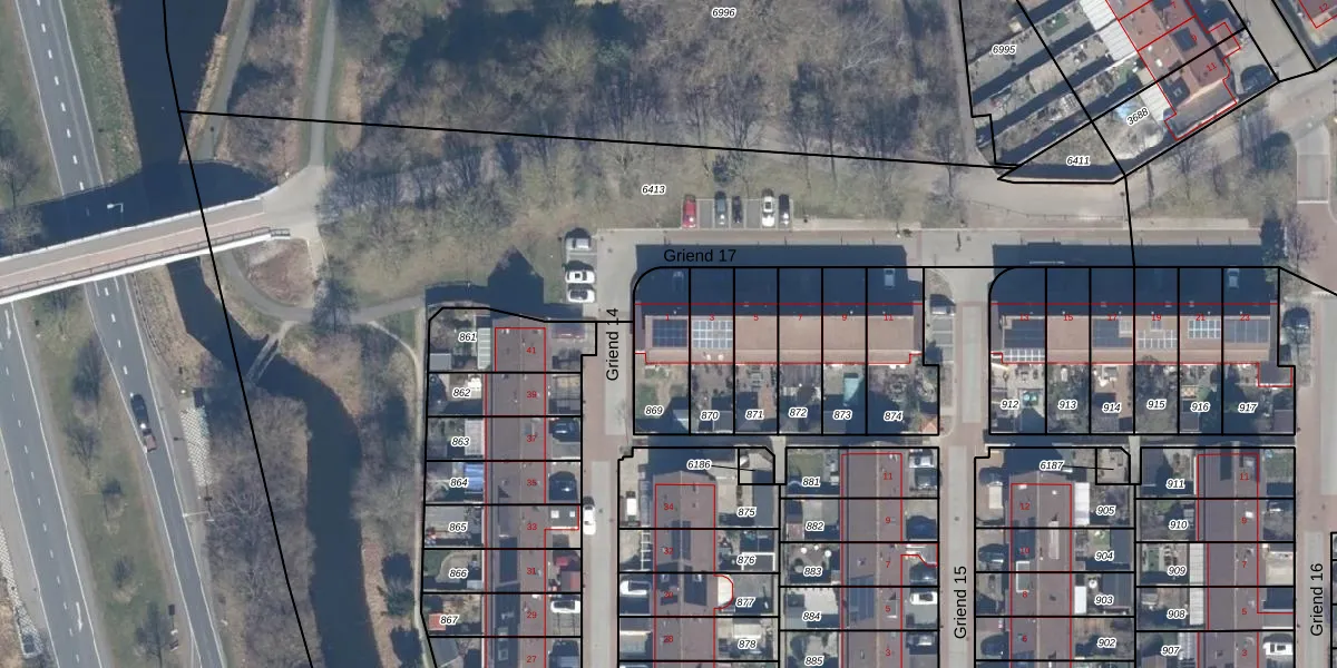 Gebruik de zoekbalk of klik op een perceel voor informatie over de adressen binnen dit perceel.