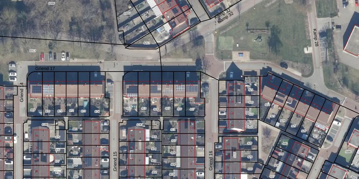 Het perceel waarop Griend 17 21 staat heeft een oppervlakte van 166 m². Dit is een middelgroot perceel. De perceeloppervlakte wordt geregistreerd door het Kadaster. Gedetailleerde informatie over de maten van dit perceel kunt u vinden in het rapport Kadastrale kaart met maatvoering van Griend 17 21.