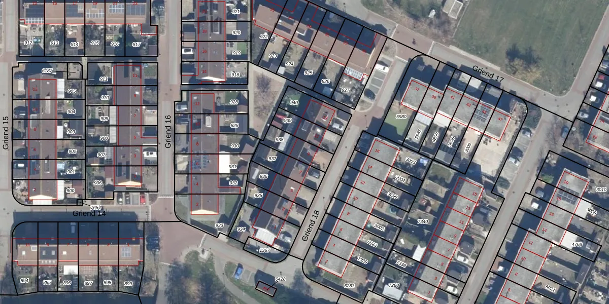 Gebruik de zoekbalk of klik op een perceel voor informatie over de adressen binnen dit perceel.