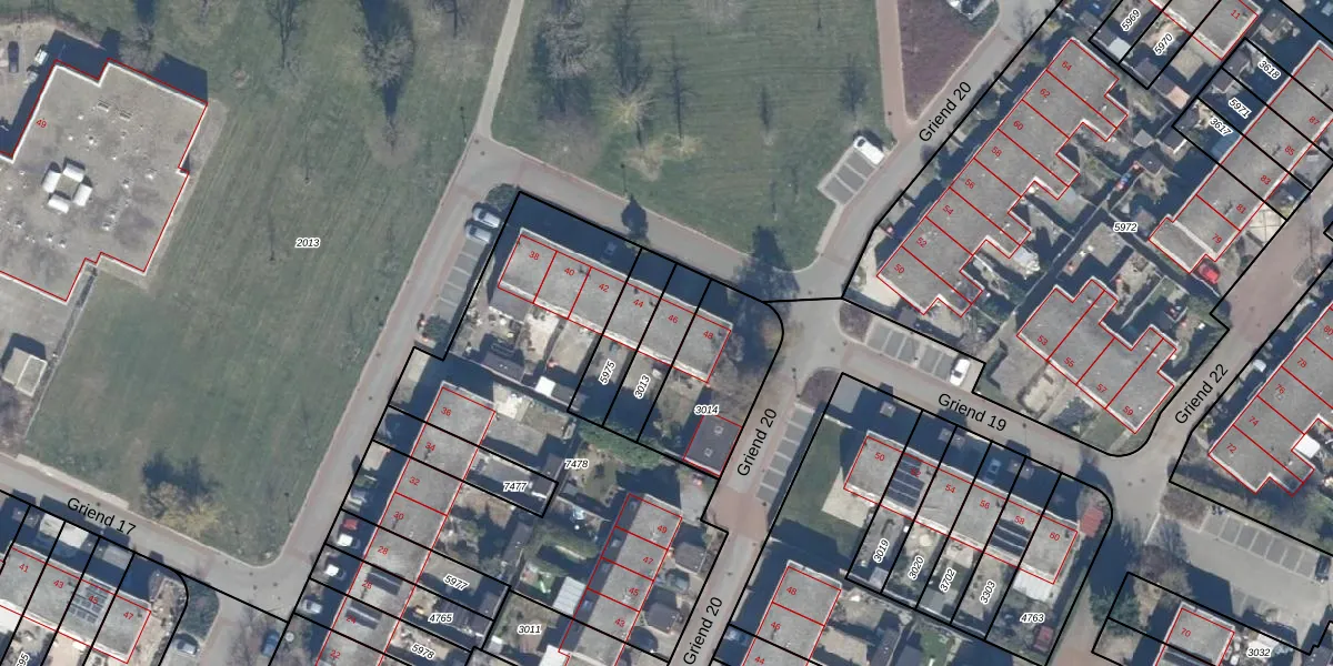 Gebruik de zoekbalk of klik op een perceel voor informatie over de adressen binnen dit perceel.