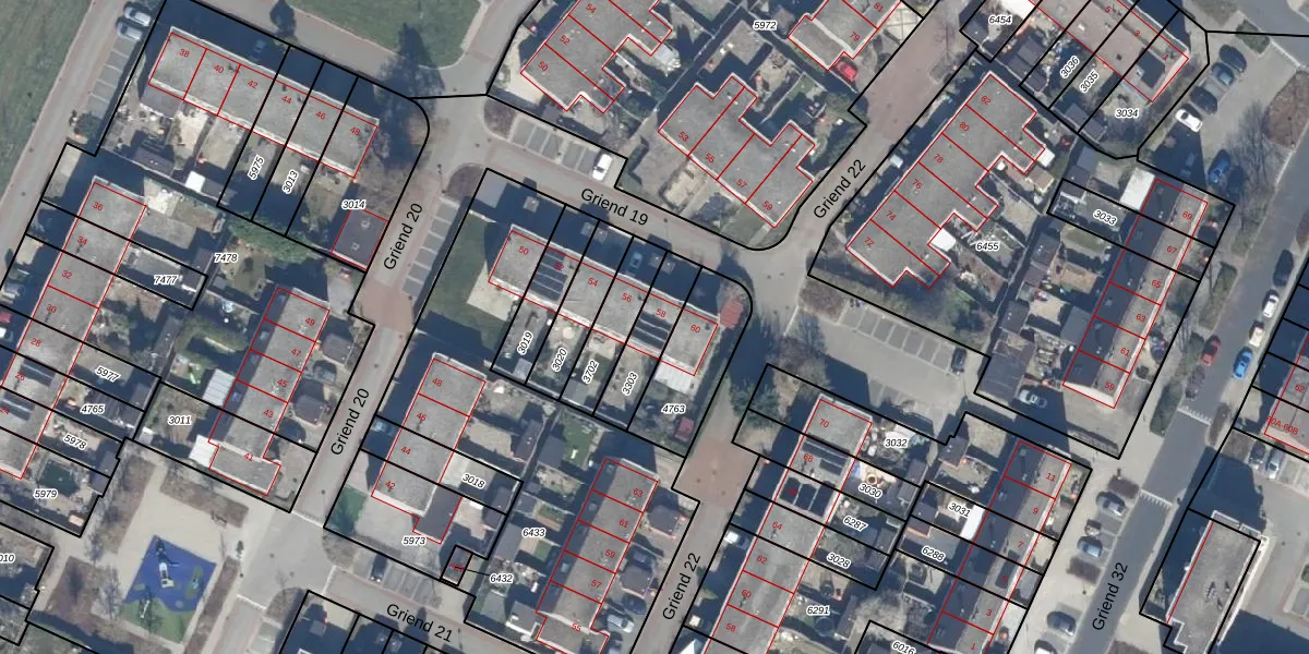 Gebruik de zoekbalk of klik op een perceel voor informatie over de adressen binnen dit perceel.