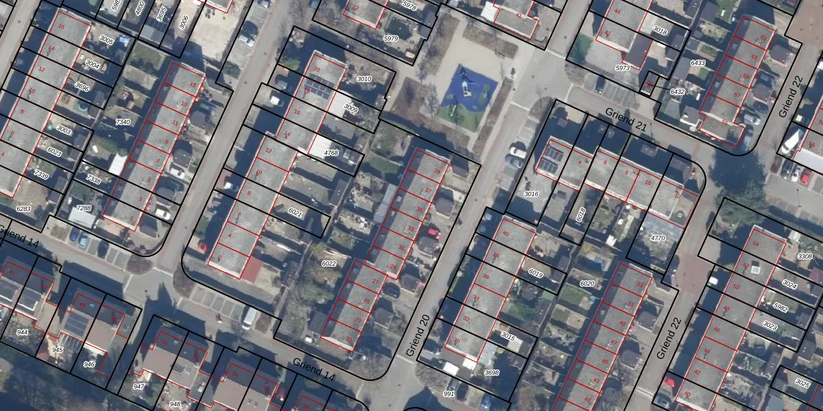 Het perceel waarop Griend 20 35 staat heeft een oppervlakte van 2772 m². Dit is een zeer groot perceel. De perceeloppervlakte wordt geregistreerd door het Kadaster. Gedetailleerde informatie over de maten van dit perceel kunt u vinden in het rapport Kadastrale kaart met maatvoering van Griend 20 35.