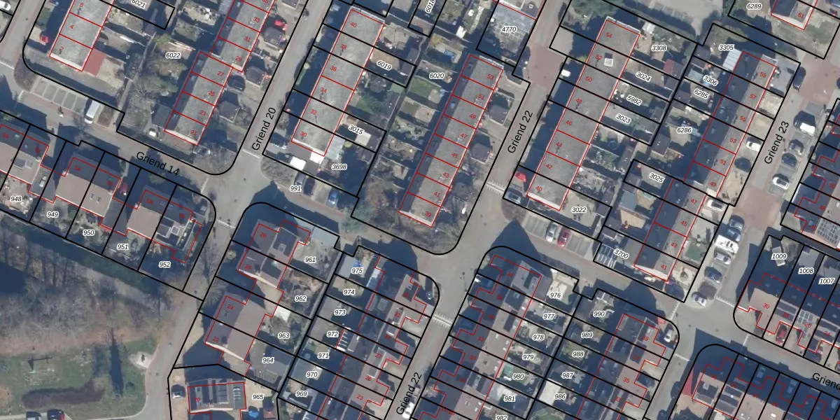 Het perceel waarop Griend 22 39 staat heeft een oppervlakte van 2220 m². Dit is een zeer groot perceel. De perceeloppervlakte wordt geregistreerd door het Kadaster. Gedetailleerde informatie over de maten van dit perceel kunt u vinden in het rapport Kadastrale kaart met maatvoering van Griend 22 39.