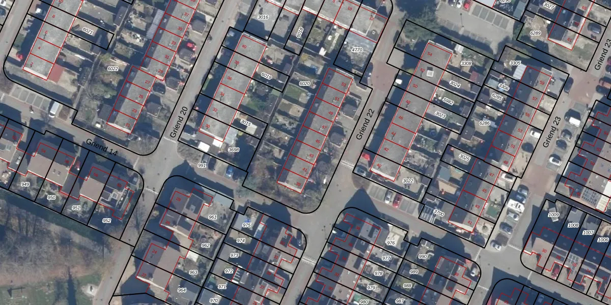 Het perceel waarop Griend 22 43 staat heeft een oppervlakte van 2220 m². Dit is een zeer groot perceel. De perceeloppervlakte wordt geregistreerd door het Kadaster. Gedetailleerde informatie over de maten van dit perceel kunt u vinden in het rapport Kadastrale kaart met maatvoering van Griend 22 43.