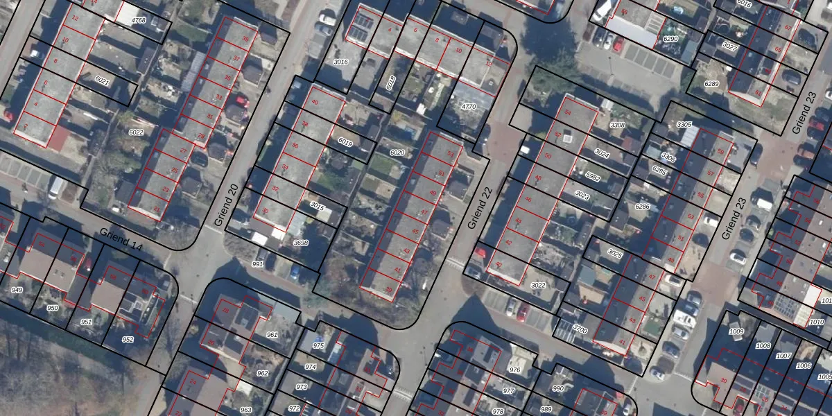 Het perceel waarop Griend 22 47 staat heeft een oppervlakte van 2220 m². Dit is een zeer groot perceel. De perceeloppervlakte wordt geregistreerd door het Kadaster. Gedetailleerde informatie over de maten van dit perceel kunt u vinden in het rapport Kadastrale kaart met maatvoering van Griend 22 47.