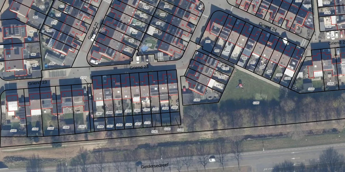 Het perceel waarop Griend 23 36 staat heeft een oppervlakte van 140 m². Dit is een middelgroot perceel. De perceeloppervlakte wordt geregistreerd door het Kadaster. Gedetailleerde informatie over de maten van dit perceel kunt u vinden in het rapport Kadastrale kaart met maatvoering van Griend 23 36.