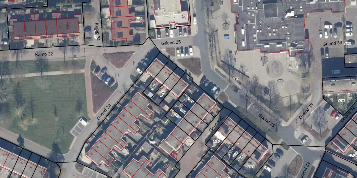 Het perceel waarop Griend 25 11 staat heeft een oppervlakte van 2889 m². Dit is een zeer groot perceel. De perceeloppervlakte wordt geregistreerd door het Kadaster. Gedetailleerde informatie over de maten van dit perceel kunt u vinden in het rapport Kadastrale kaart met maatvoering van Griend 25 11.