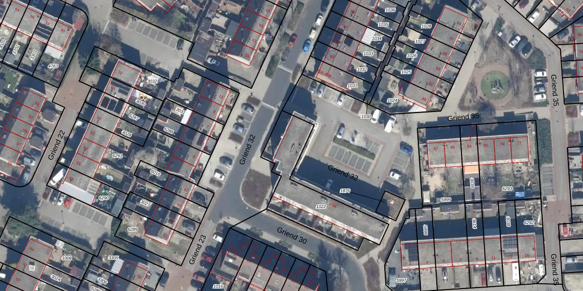 Het perceel waarop Griend 32 22 staat heeft een oppervlakte van 716 m². Dit is een groot perceel. De perceeloppervlakte wordt geregistreerd door het Kadaster. Gedetailleerde informatie over de maten van dit perceel kunt u vinden in het rapport Kadastrale kaart met maatvoering van Griend 32 22.