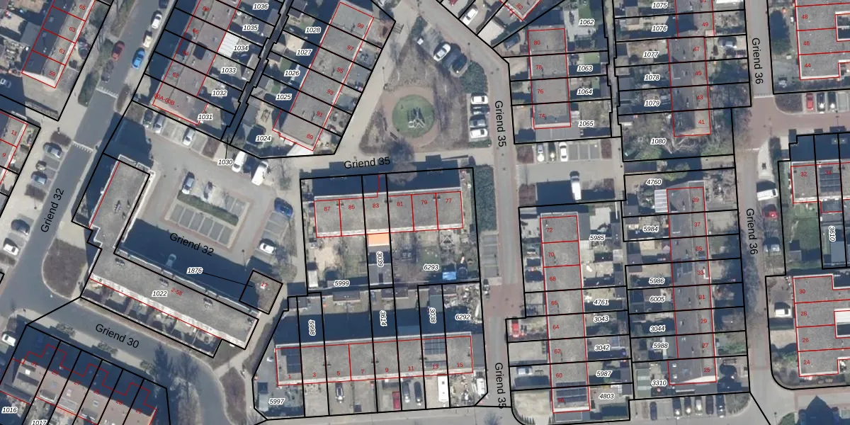 Het perceel waarop Griend 35 79 staat heeft een oppervlakte van 716 m². Dit is een groot perceel. De perceeloppervlakte wordt geregistreerd door het Kadaster. Gedetailleerde informatie over de maten van dit perceel kunt u vinden in het rapport Kadastrale kaart met maatvoering van Griend 35 79.