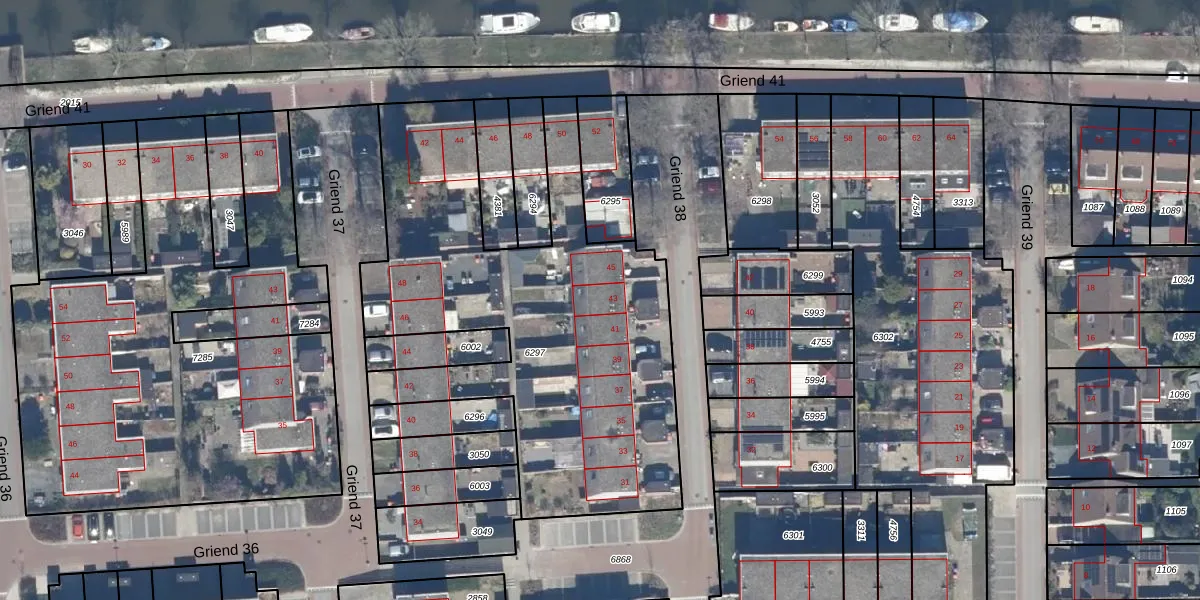 Het perceel waarop Griend 38 43 staat heeft een oppervlakte van 2199 m². Dit is een zeer groot perceel. De perceeloppervlakte wordt geregistreerd door het Kadaster. Gedetailleerde informatie over de maten van dit perceel kunt u vinden in het rapport Kadastrale kaart met maatvoering van Griend 38 43.