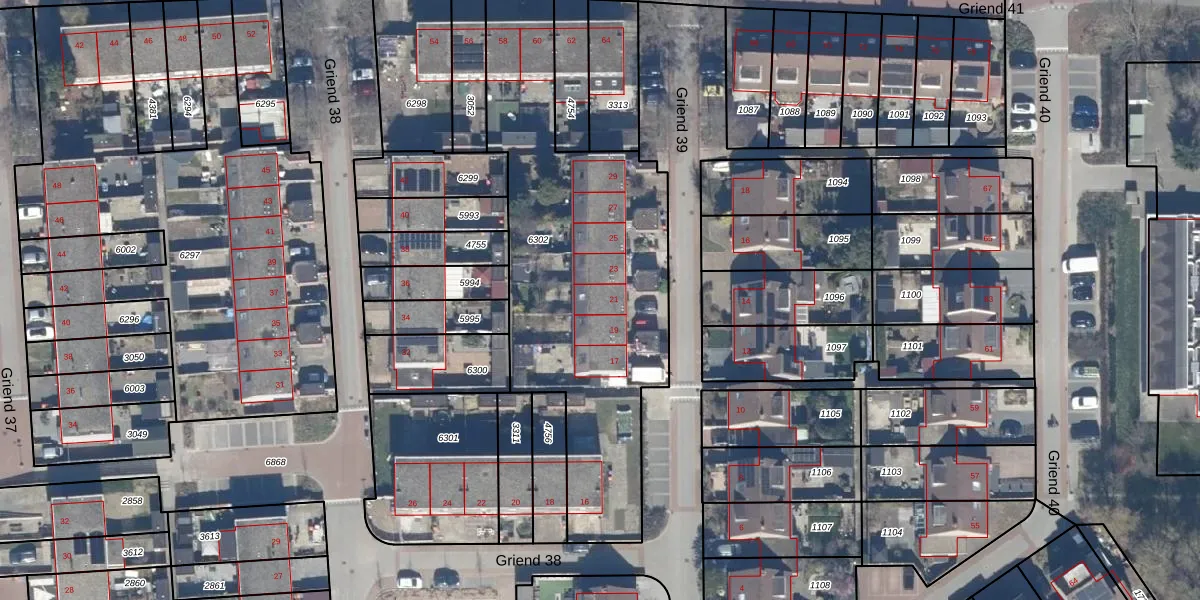 Het perceel waarop Griend 39 21 staat heeft een oppervlakte van 1658 m². Dit is een zeer groot perceel. De perceeloppervlakte wordt geregistreerd door het Kadaster. Gedetailleerde informatie over de maten van dit perceel kunt u vinden in het rapport Kadastrale kaart met maatvoering van Griend 39 21.