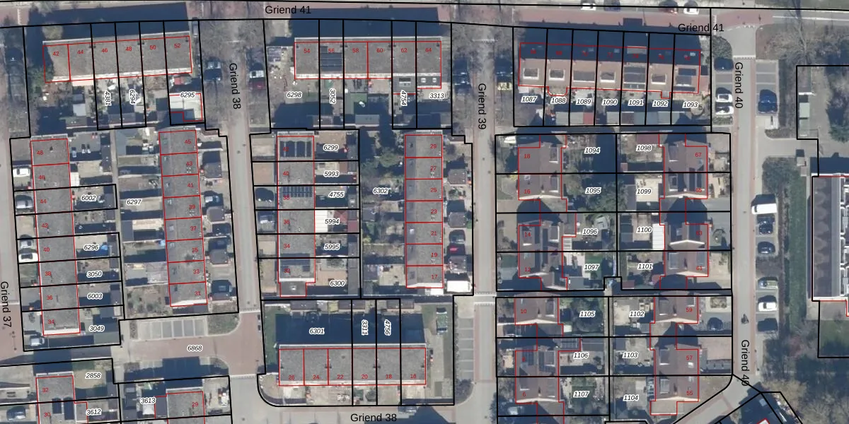 Het perceel waarop Griend 39 23 staat heeft een oppervlakte van 1658 m². Dit is een zeer groot perceel. De perceeloppervlakte wordt geregistreerd door het Kadaster. Gedetailleerde informatie over de maten van dit perceel kunt u vinden in het rapport Kadastrale kaart met maatvoering van Griend 39 23.