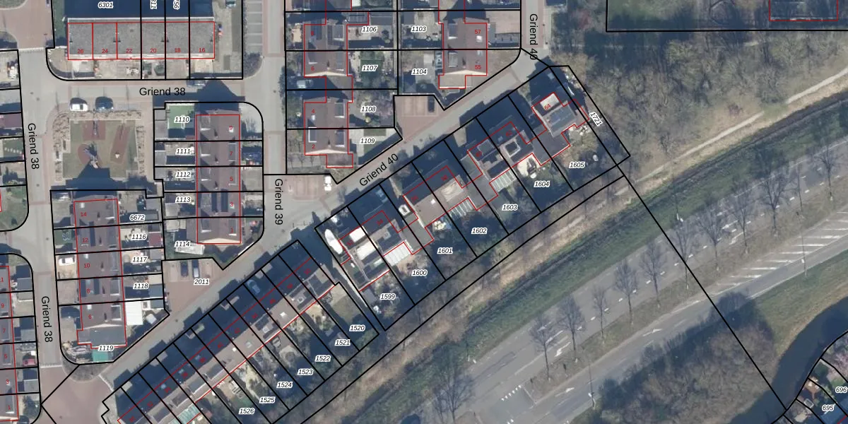 Het perceel waarop Griend 40 56 staat heeft een oppervlakte van 255 m². Dit is een middelgroot perceel. De perceeloppervlakte wordt geregistreerd door het Kadaster. Gedetailleerde informatie over de maten van dit perceel kunt u vinden in het rapport Kadastrale kaart met maatvoering van Griend 40 56.