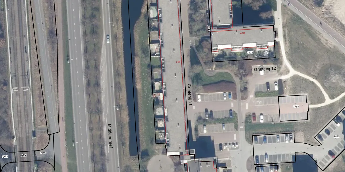 Het perceel waarop Grietenij 11 34 staat heeft een oppervlakte van 4989 m². Dit is een zeer groot perceel. De perceeloppervlakte wordt geregistreerd door het Kadaster. Gedetailleerde informatie over de maten van dit perceel kunt u vinden in het rapport Kadastrale kaart met maatvoering van Grietenij 11 34.