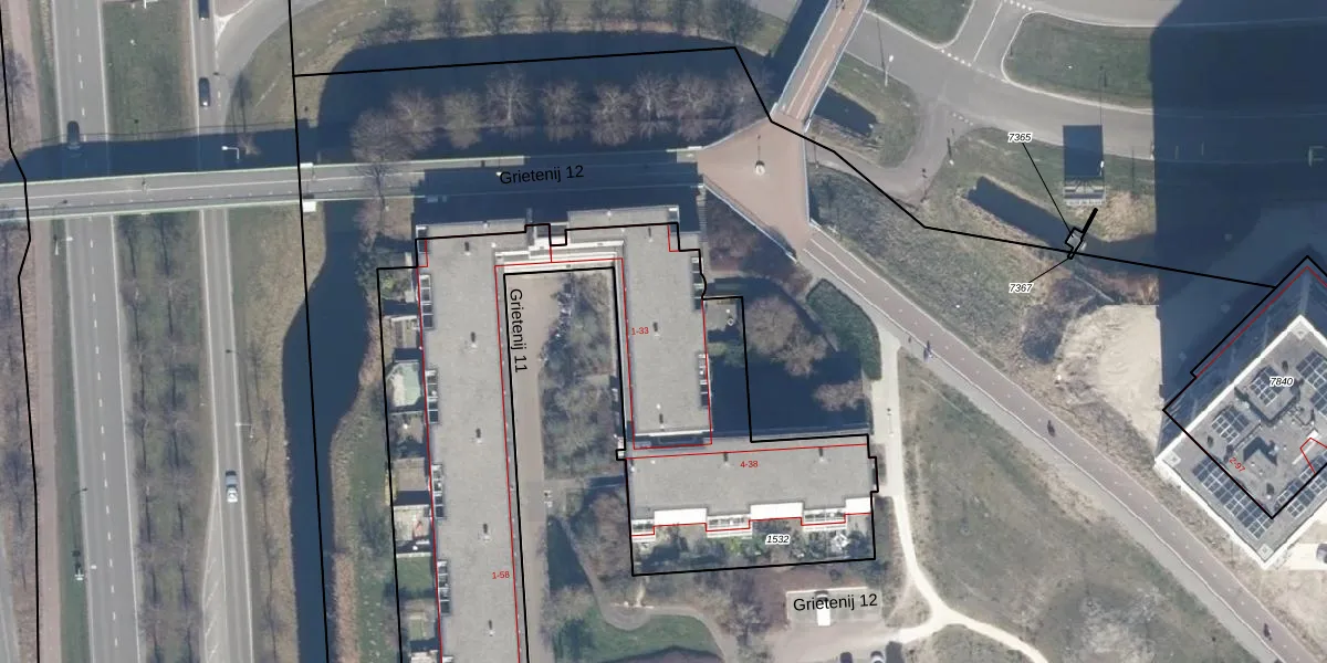 Het perceel waarop Grietenij 12 21 staat heeft een oppervlakte van 4989 m². Dit is een zeer groot perceel. De perceeloppervlakte wordt geregistreerd door het Kadaster. Gedetailleerde informatie over de maten van dit perceel kunt u vinden in het rapport Kadastrale kaart met maatvoering van Grietenij 12 21.