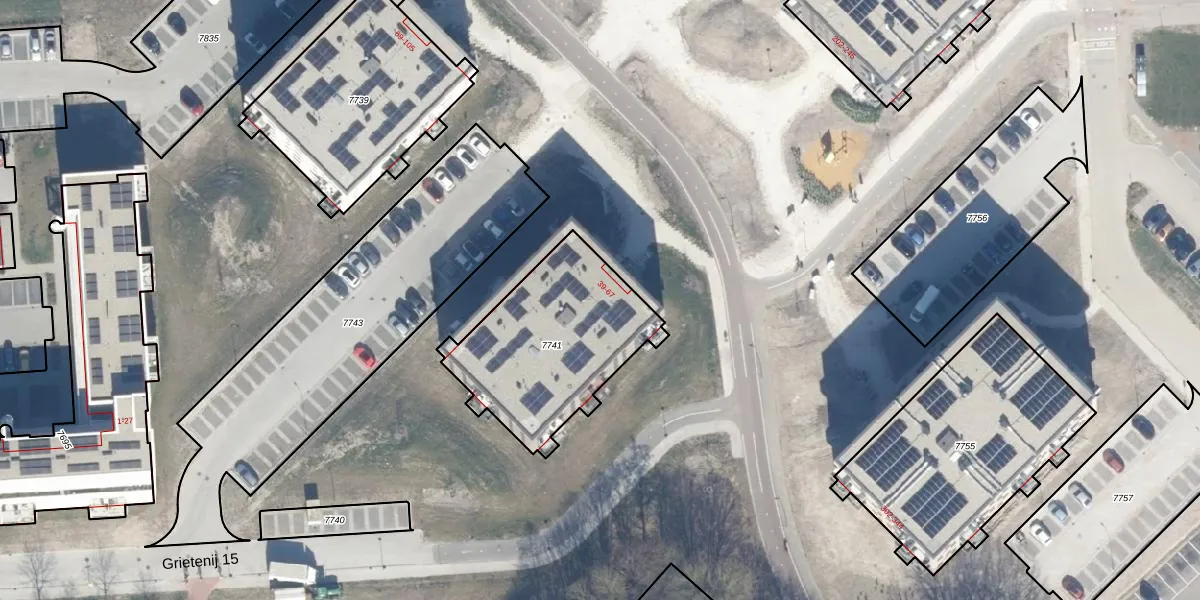 Het perceel waarop Grietenij 15 44 staat heeft een oppervlakte van 707 m². Dit is een groot perceel. De perceeloppervlakte wordt geregistreerd door het Kadaster. Gedetailleerde informatie over de maten van dit perceel kunt u vinden in het rapport Kadastrale kaart met maatvoering van Grietenij 15 44.