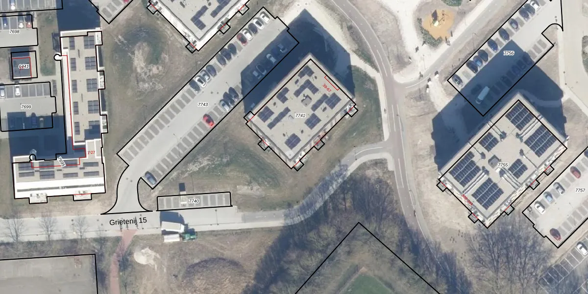 Het perceel waarop Grietenij 15 63 staat heeft een oppervlakte van 707 m². Dit is een groot perceel. De perceeloppervlakte wordt geregistreerd door het Kadaster. Gedetailleerde informatie over de maten van dit perceel kunt u vinden in het rapport Kadastrale kaart met maatvoering van Grietenij 15 63.