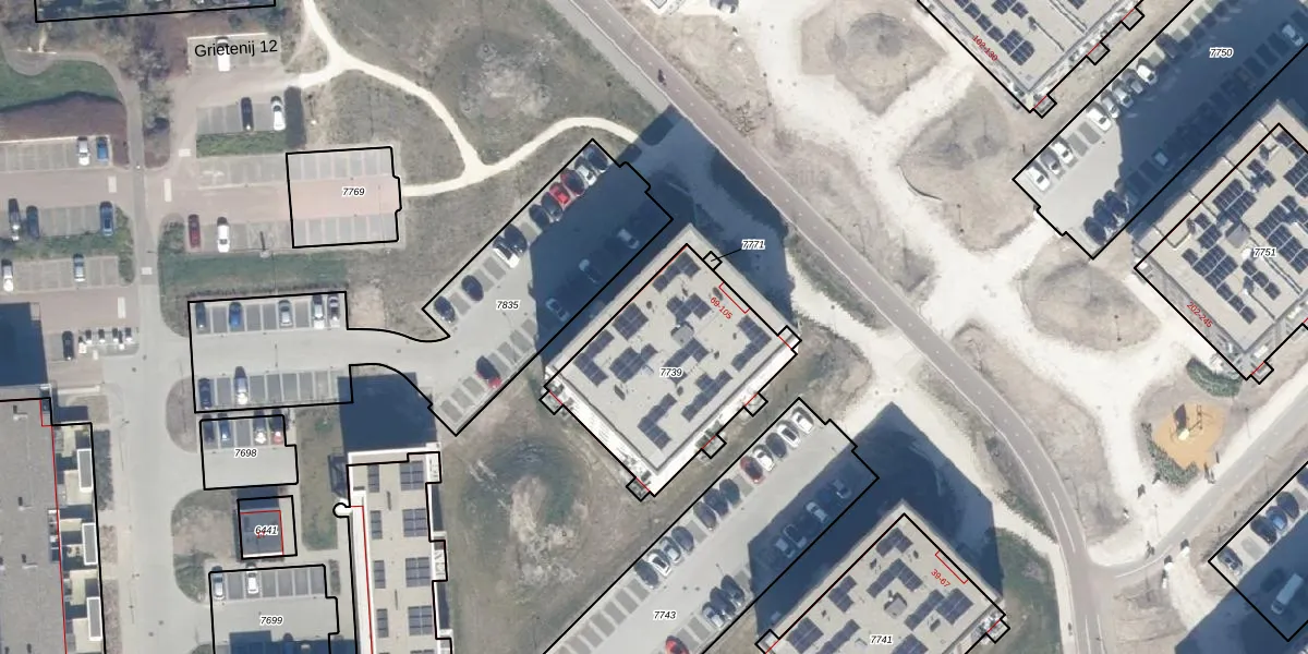 Het perceel waarop Grietenij 15 80 staat heeft een oppervlakte van 762 m². Dit is een groot perceel. De perceeloppervlakte wordt geregistreerd door het Kadaster. Gedetailleerde informatie over de maten van dit perceel kunt u vinden in het rapport Kadastrale kaart met maatvoering van Grietenij 15 80.
