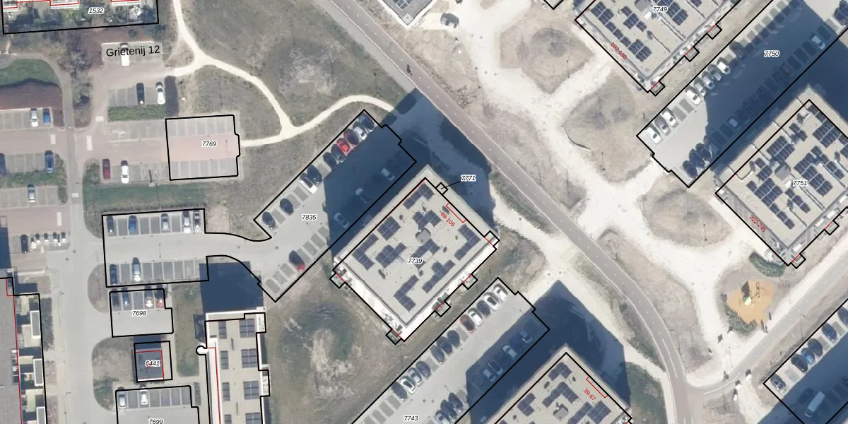 Het perceel waarop Grietenij 15 81 staat heeft een oppervlakte van 762 m². Dit is een groot perceel. De perceeloppervlakte wordt geregistreerd door het Kadaster. Gedetailleerde informatie over de maten van dit perceel kunt u vinden in het rapport Kadastrale kaart met maatvoering van Grietenij 15 81.