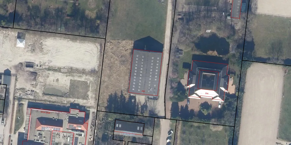 Het perceel waarop Groene Velden 206 staat heeft een oppervlakte van 5710 m². Dit is een zeer groot perceel. De perceeloppervlakte wordt geregistreerd door het Kadaster. Gedetailleerde informatie over de maten van dit perceel kunt u vinden in het rapport Kadastrale kaart met maatvoering van Groene Velden 206.