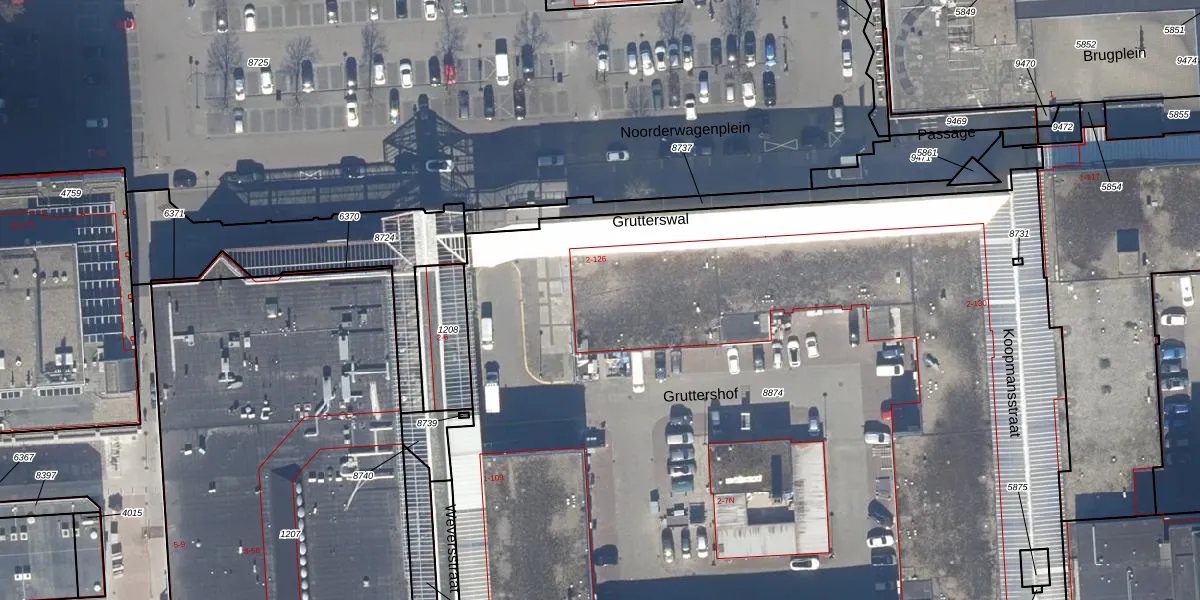 Het perceel waarop Grutterswal 106 staat heeft een oppervlakte van 9792 m². Dit is een zeer groot perceel. De perceeloppervlakte wordt geregistreerd door het Kadaster. Gedetailleerde informatie over de maten van dit perceel kunt u vinden in het rapport Kadastrale kaart met maatvoering van Grutterswal 106.
