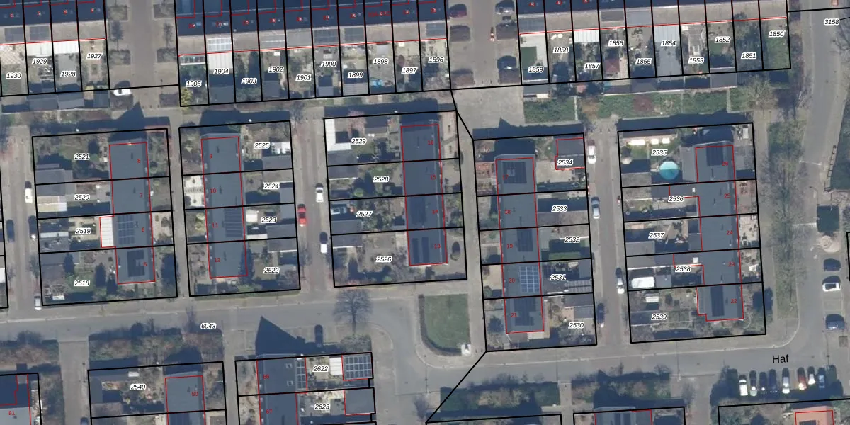 Het perceel waarop Haf 14 staat heeft een oppervlakte van 253 m². Dit is een middelgroot perceel. De perceeloppervlakte wordt geregistreerd door het Kadaster. Gedetailleerde informatie over de maten van dit perceel kunt u vinden in het rapport Kadastrale kaart met maatvoering van Haf 14.
