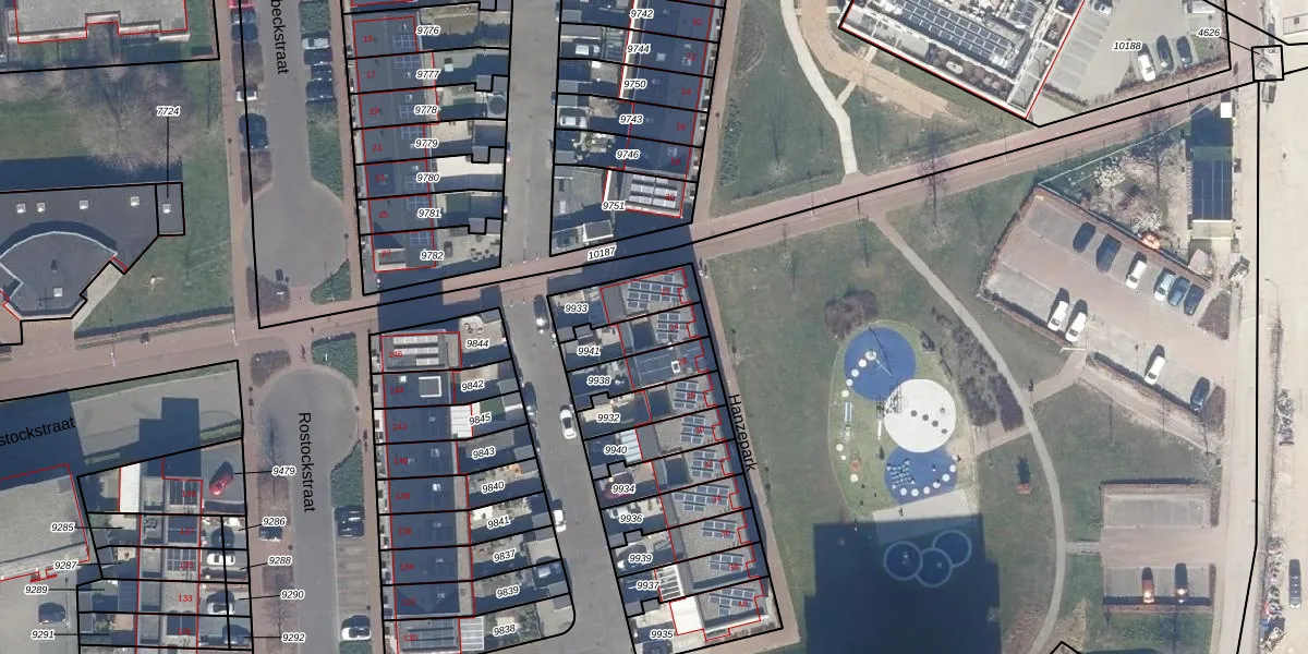 Gebruik de zoekbalk of klik op een perceel voor informatie over de adressen binnen dit perceel.