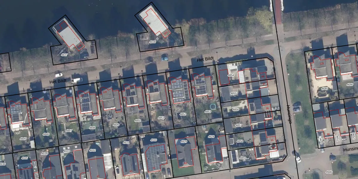 Het perceel waarop Het Bildt 119 staat heeft een oppervlakte van 416 m². Dit is een groot perceel. De perceeloppervlakte wordt geregistreerd door het Kadaster. Gedetailleerde informatie over de maten van dit perceel kunt u vinden in het rapport Kadastrale kaart met maatvoering van Het Bildt 119.