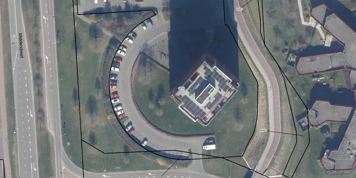 Het adres ligt op het perceel LLS00-O-6850, dat zich in de kadastrale gemeente Lelystad bevindt. De gemiddelde perceelgrootte in Lelystad is 2,1 ha. Dit perceel is kleiner: de perceeloppervlakte bedraagt 6476 m². Het grootste perceel in de kadastrale gemeente is 78,50 km². Het kleinste perceel heeft een oppervlakte van 0 m². Op het perceel zijn 65 adressen aanwezig. In de Basisregistratie Kadaster (BRK) werden de grenzen van het perceel geregistreerd op 13-09-2006.